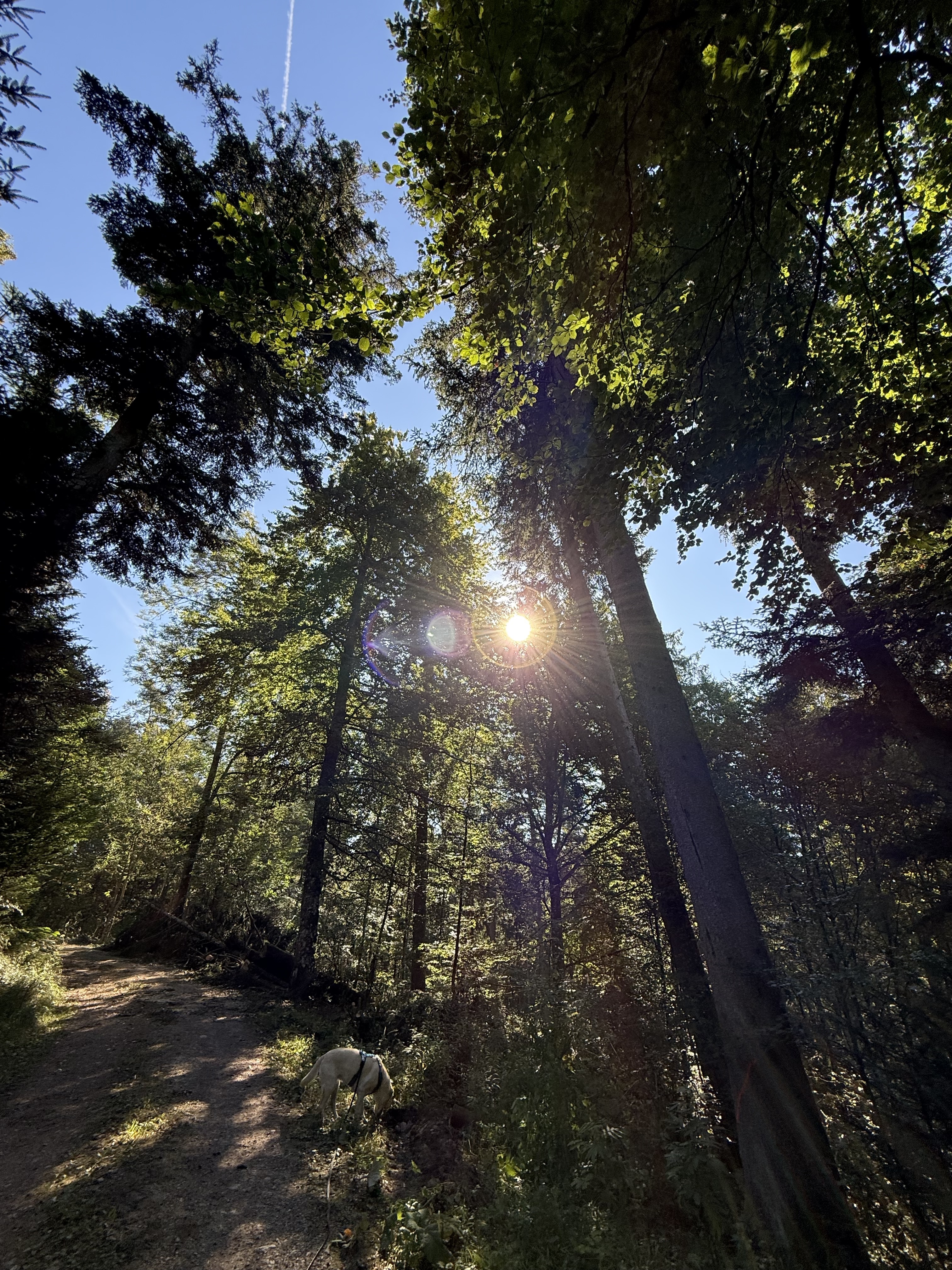 Ich geniesse es, zusammen mit meinem Hund im Wald zu spazieren. Die frische Luft, das Zwitschern der Vögel, das Rascheln der Blätter unter den Füssen und der Duft von feuchtem Moos schaffen eine beruhigende Atmosphäre. Ein Spaziergang im Wald ermöglicht es uns, der Hektik im Alltag zu entfliehen und uns mit der Natur zu verbinden. Der Wald bietet einen Raum der Stille, in dem wir nachdenken und neue Ideen gewinnen können. Beim Nachdenken «stolpere» ich oft über kleine Schönheiten, wie ein besonderes Blatt, ein Stück Moos, einen speziellen Stein oder eine schöne Feder. Diese Funde sind für mich Symbole persönlicher Einsichten oder Erinnerungen. Sie erinnern mich daran, dass oft die kleinsten Dinge die grösste Bedeutung haben können.